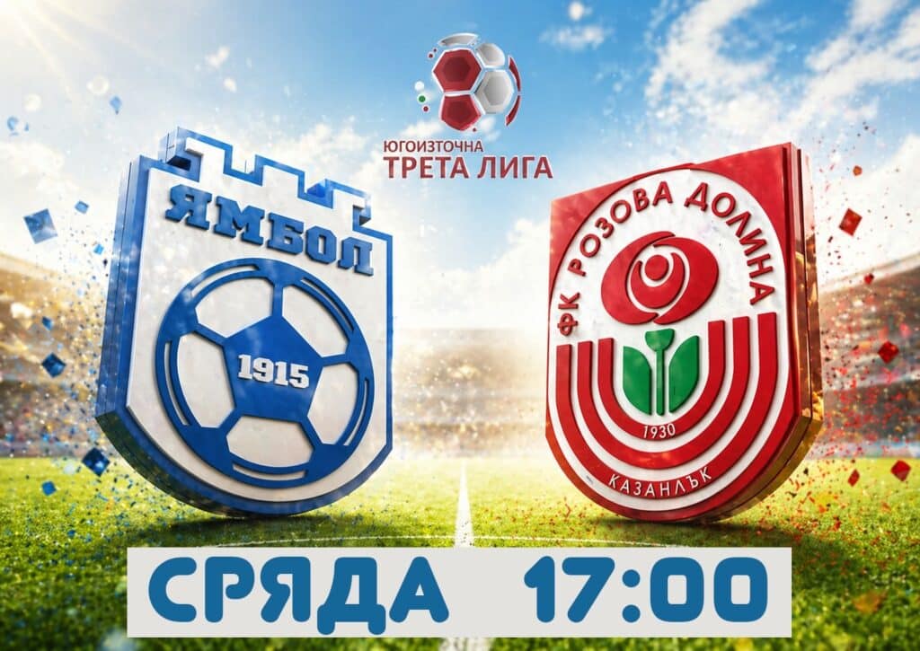 ФК Ямбол е домакин на Розова долина (Казанлък) в мач от междинния 32 кръг на Югоизточната Трета лига.